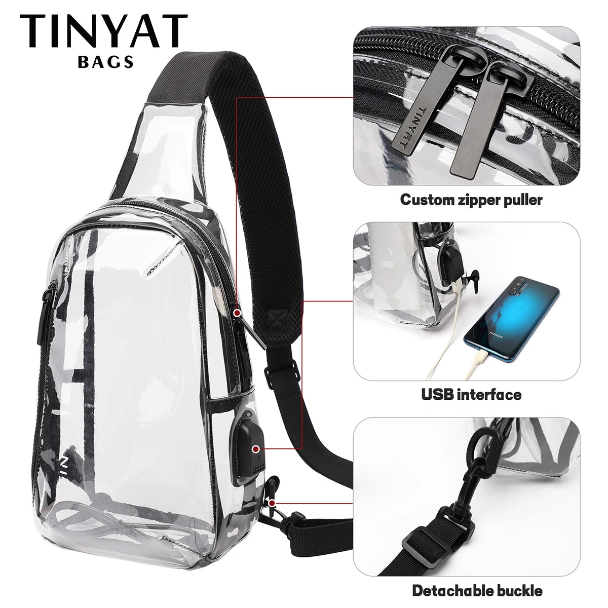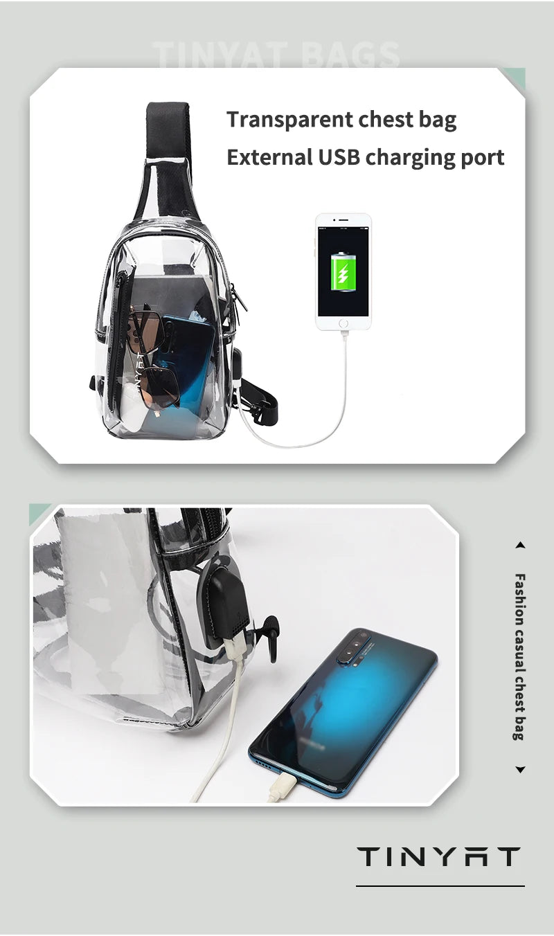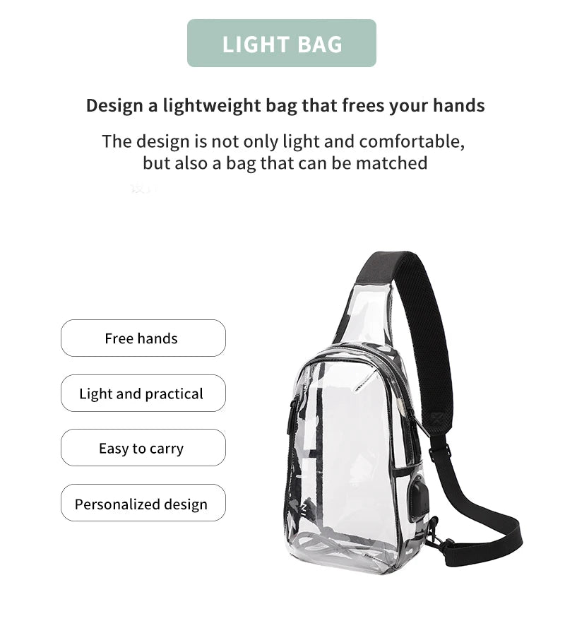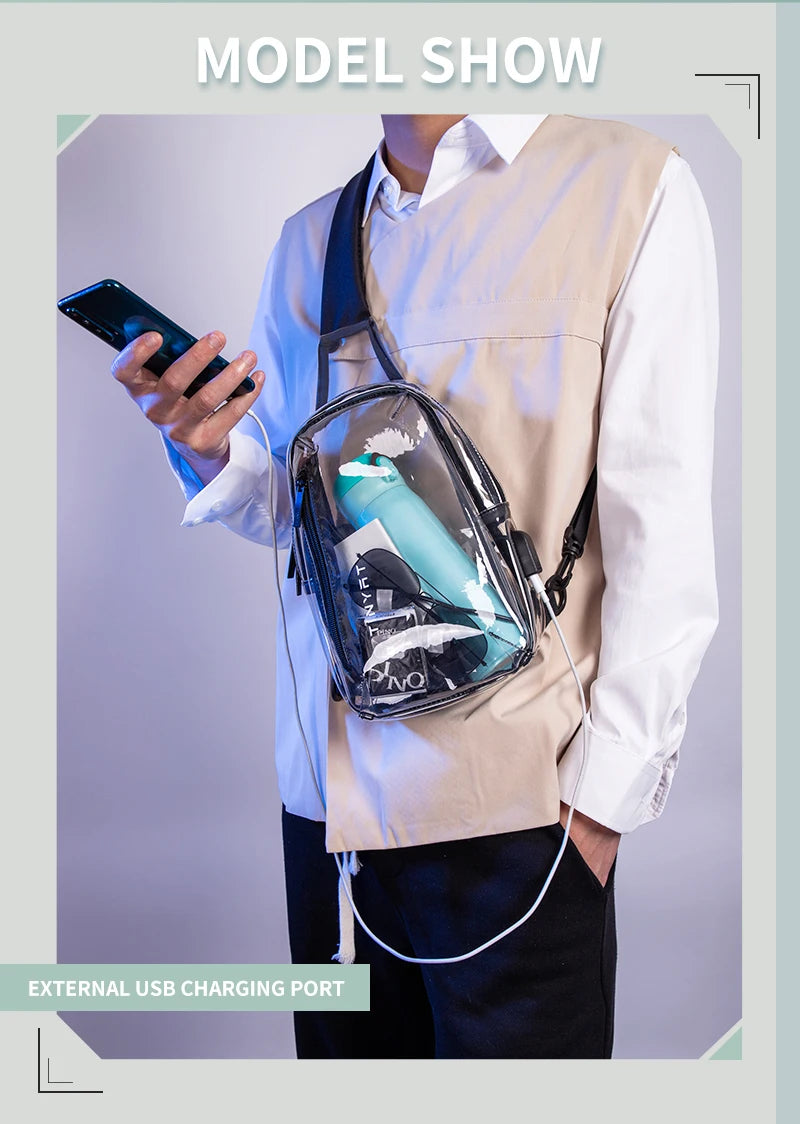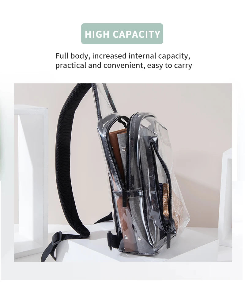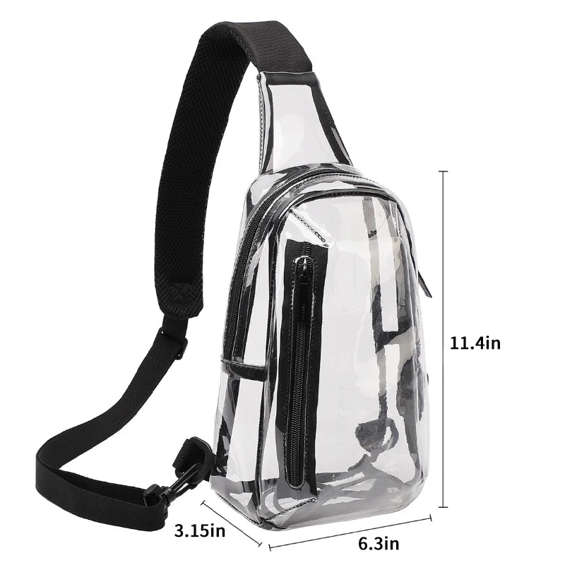 This versatile Clear Sling Bag can be worn as a crossbody, shoulder, or chest bag - however your adventure calls! Measuring L26×W8×H16cm, it's the perfect see-through companion for showing off your essentials while keeping them secure and within reach.