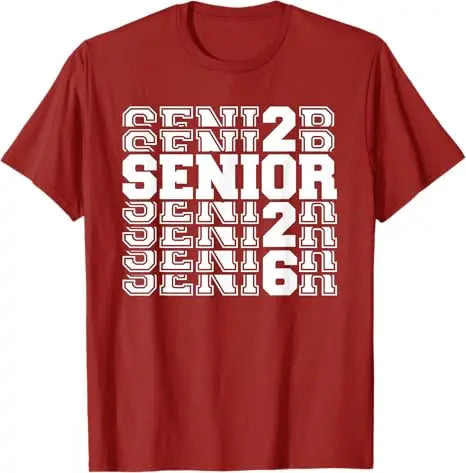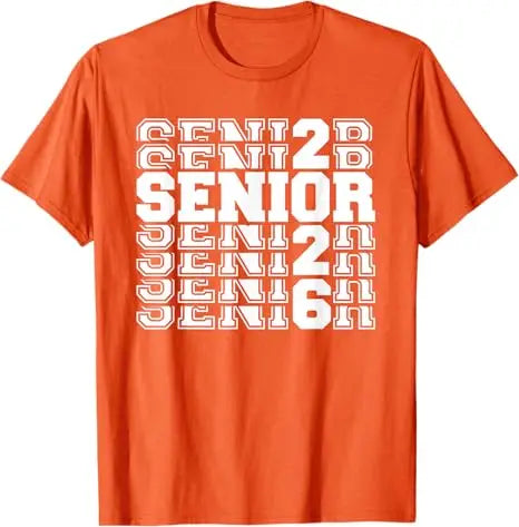 Strut your senior status in this playful "Senior 2026" crew neck tee! A breezy blend of cotton and polyester that's machine-washable and worry-free. The short sleeves and lightweight fabric keep you cool while you rule the school. Breathable comfort for all your senior year adventures!