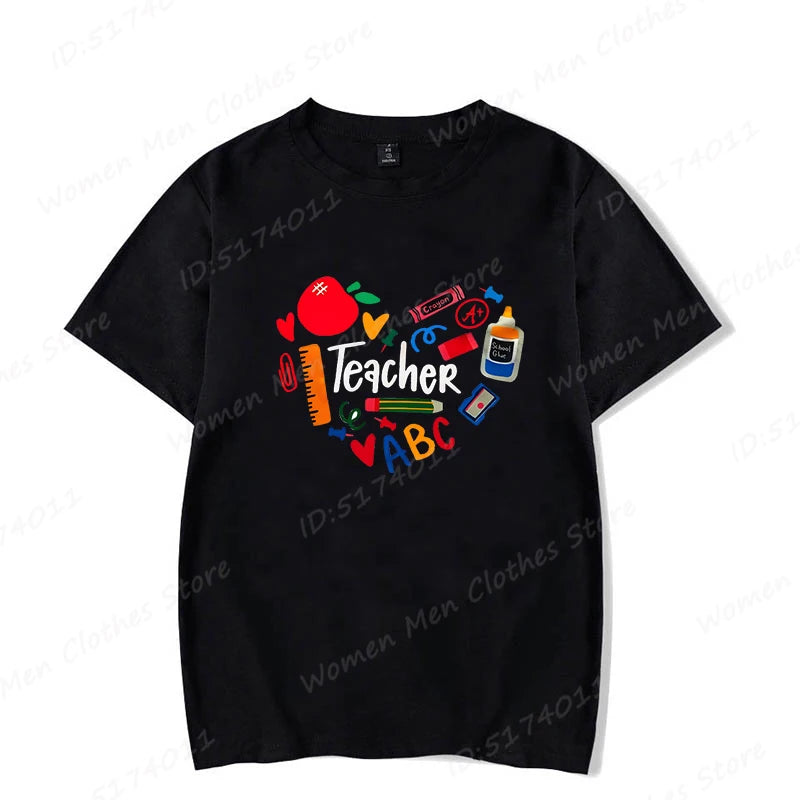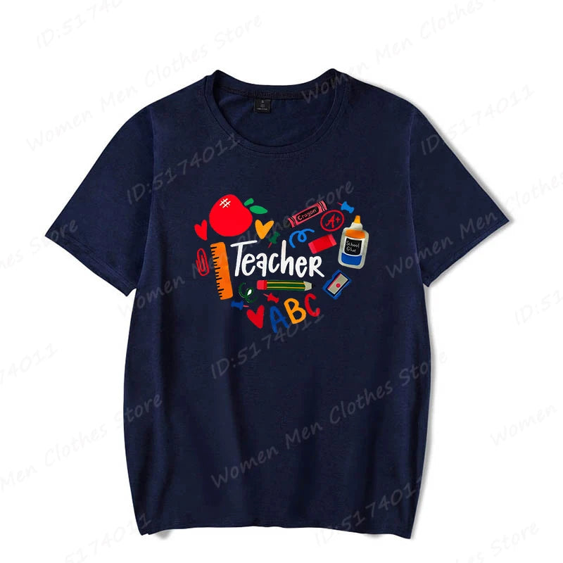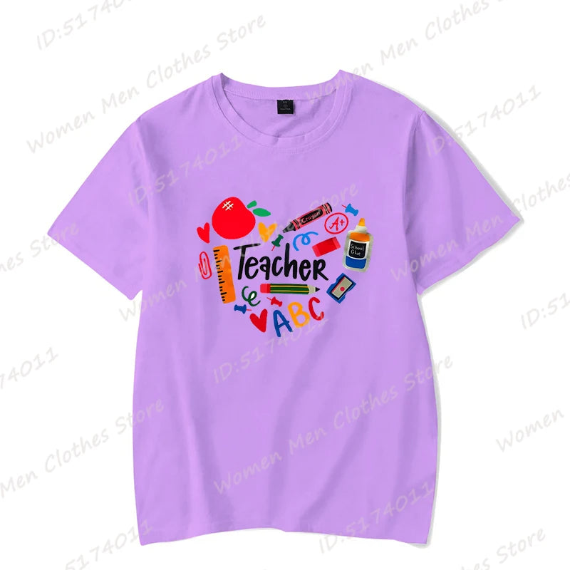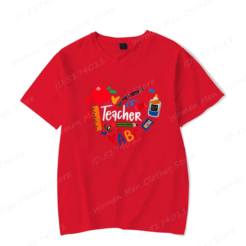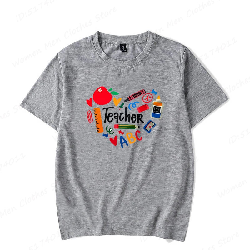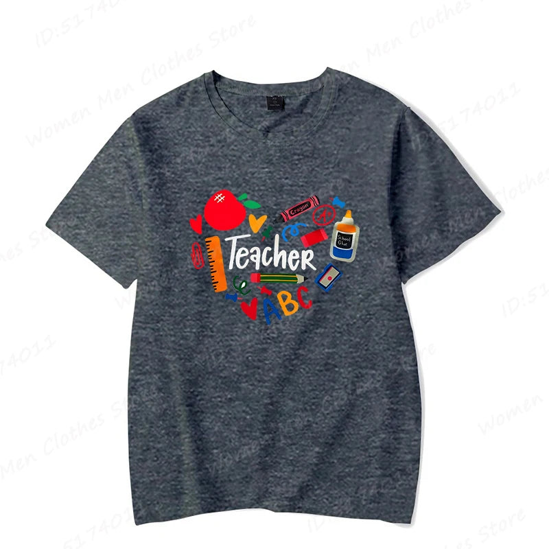 Get ready to rock your workday in this teacher heart graphic print t-shirt (and make your fellow teachers totally jealous)! Made with a slight stretch, this top is ultra-comfortable and moves with you as you go about your day. The best part? The heart graphic shows off your passion for teaching in a fun and unique way!