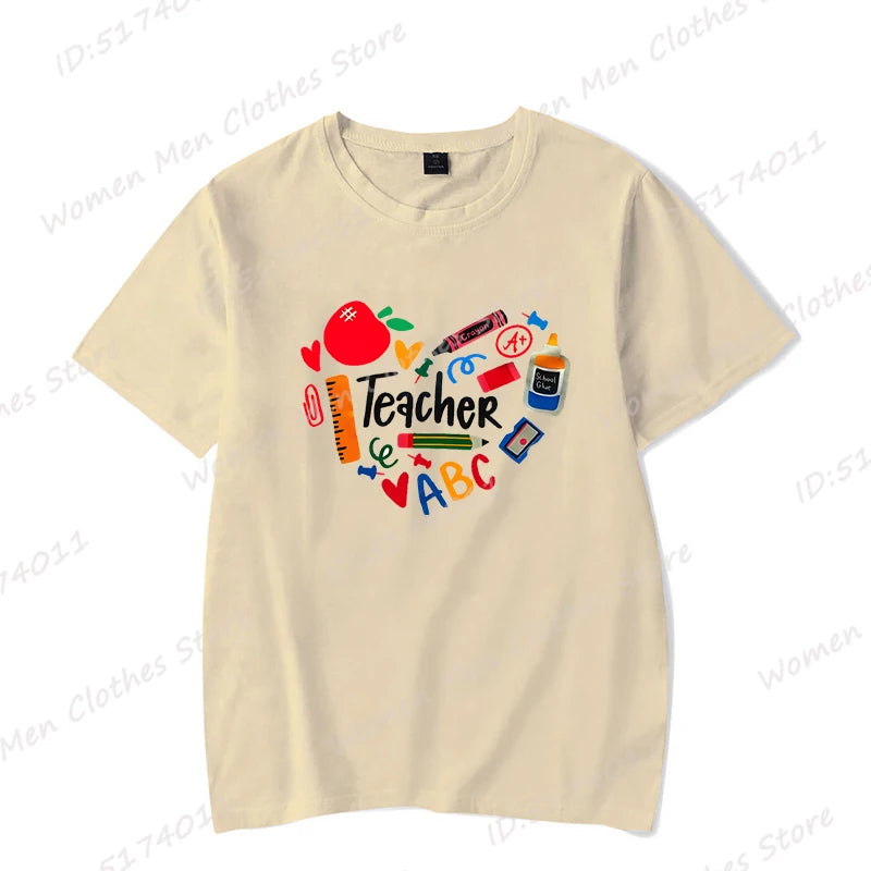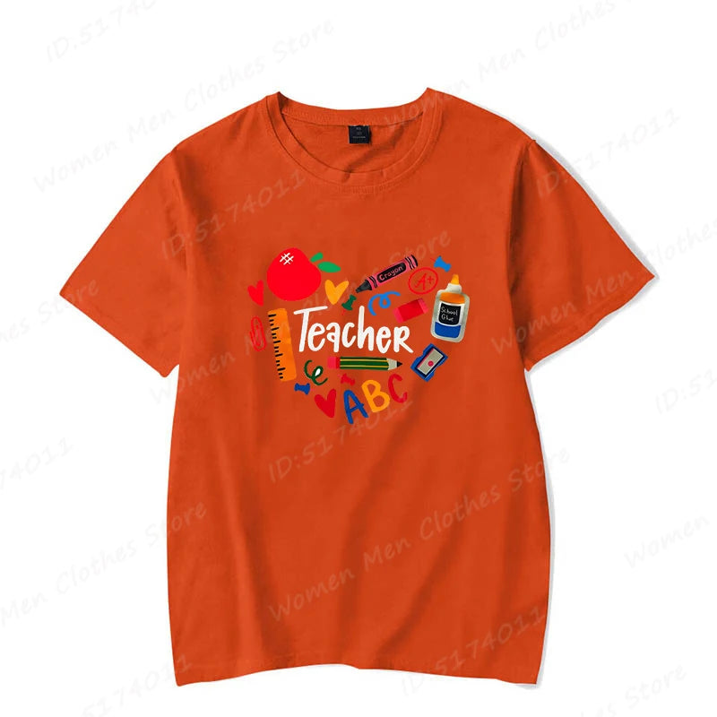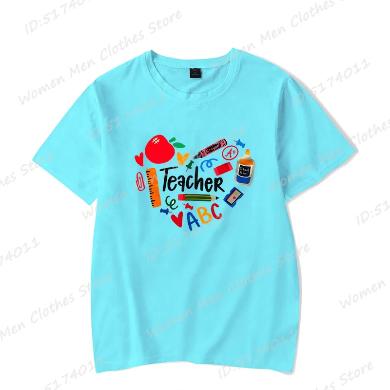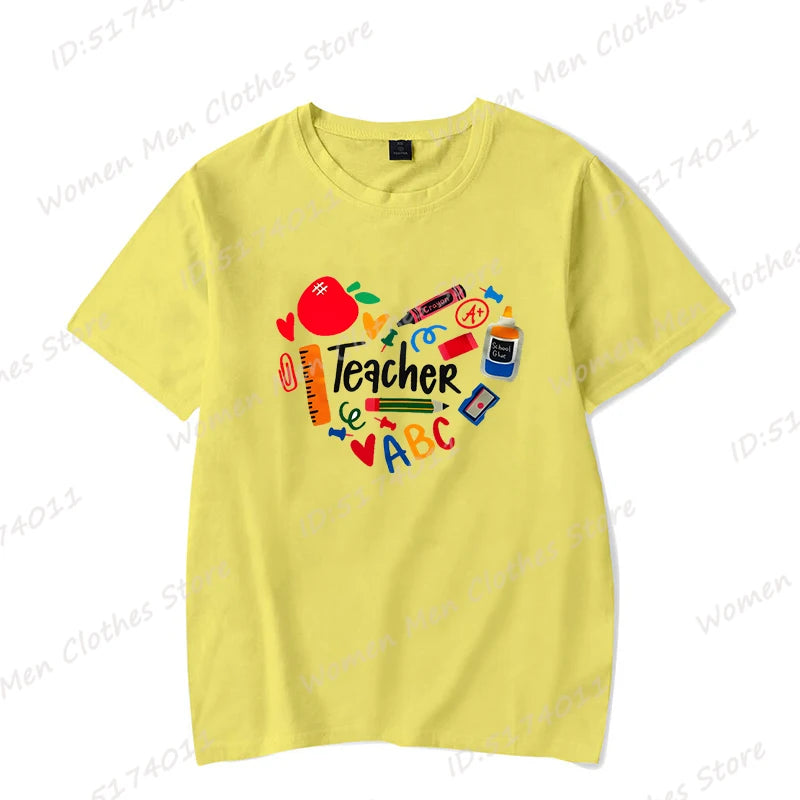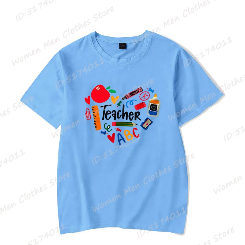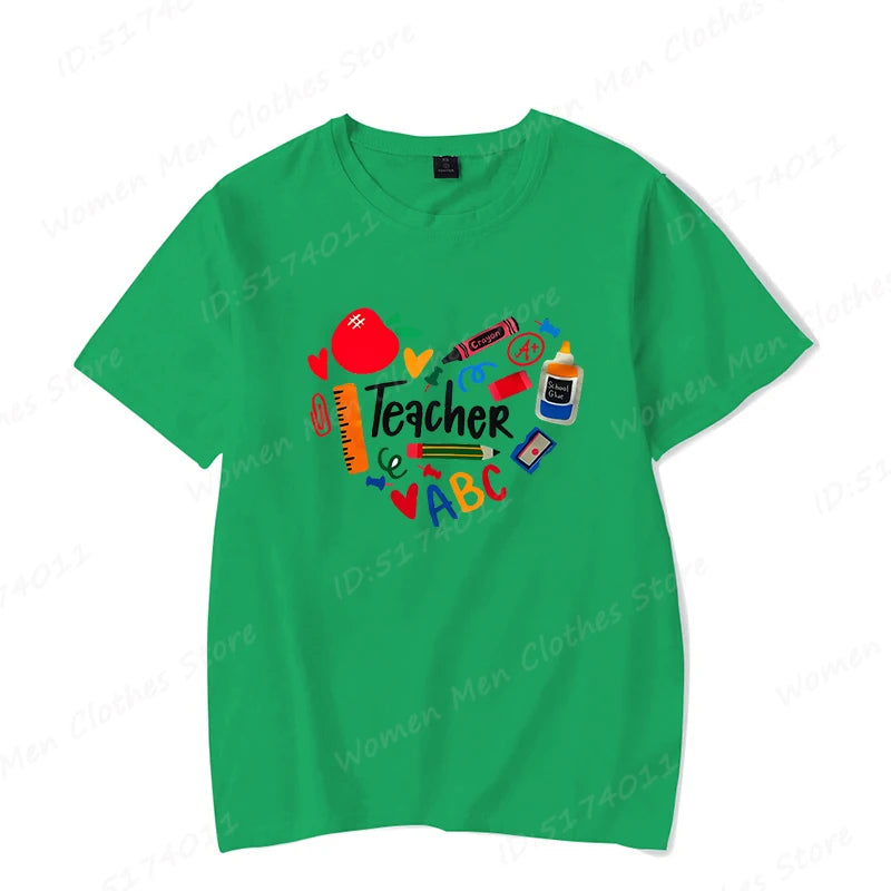 Get ready to rock your workday in this teacher heart graphic print t-shirt (and make your fellow teachers totally jealous)! Made with a slight stretch, this top is ultra-comfortable and moves with you as you go about your day. The best part? The heart graphic shows off your passion for teaching in a fun and unique way!