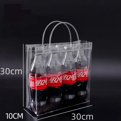 Robust and reliable: These shopping handbags feature thick PVC plastic construction, perfect for toting all your toiletries. Available in multiple sizes: vertical versions (13×7×16cm, 17×7×23cm, 21×10×34cm) and horizontal versions (20×8×16cm, 25×7×25cm, 30×10×30cm). Compact and travel-friendly! Grip with confidence: The PVC handles offer a comfy feel while ensuring your goodies stay put—even the heavy stuff won't make these bags give up! Express yourself: With crystal-clear, smooth surfaces, these bags are begging for your creative touch! Doodle, decorate, or stick on whatever tickles your fancy. Ideal for shopping sprees or wrapping up that perfect present!