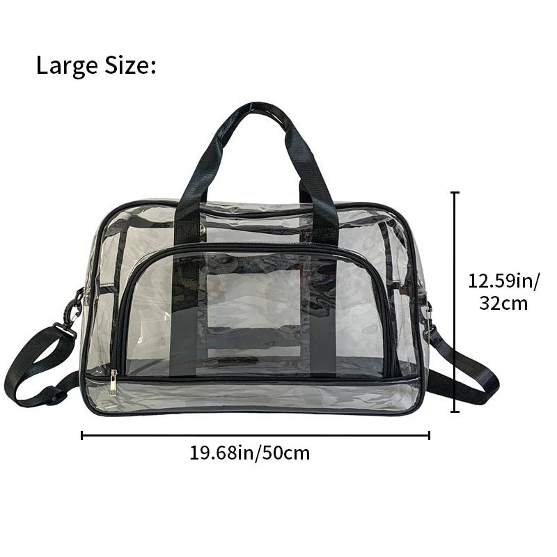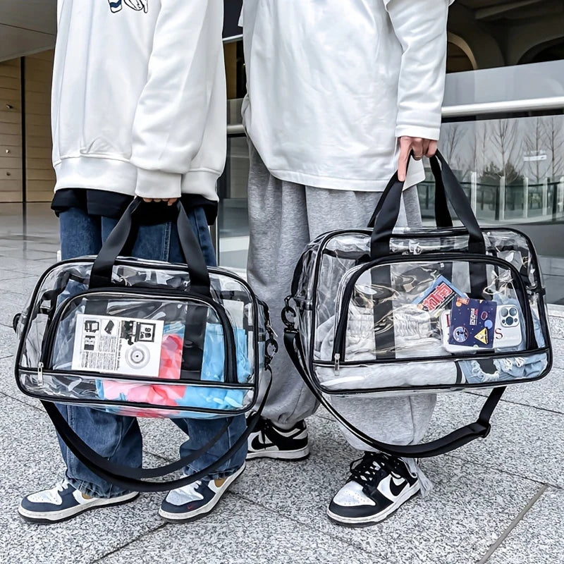 This transparent PVC duffle bag is perfect for showing off your essentials with nothing to hide! Your belongings get to play peek-a-boo while you breeze through security checks with this see-through companion.